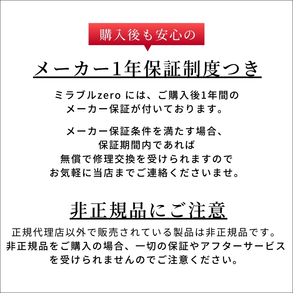 なお、当店のミラブルzeroはメーカー保証(1年)と、ミラブルzeroお役立ちbookをプレゼントしております。