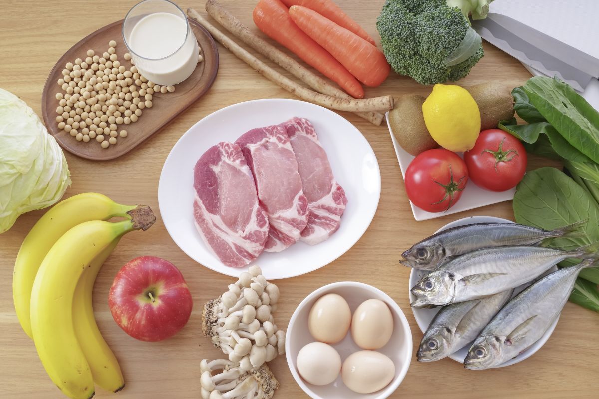 筋肉維持、代謝アップの基本となる栄養素で、魚(特に青魚)、鶏むね肉、大豆製品(豆腐、納豆)などに多く含まれています。毎食欠かさず摂る意識を持ちましょう。