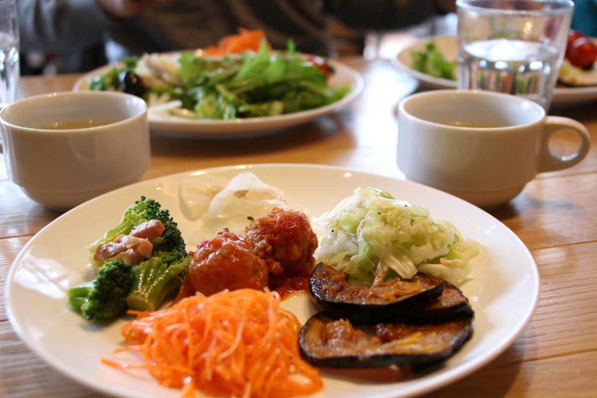 食べすぎや急激な血糖値の上昇には、食べる順番が深く関係しています。「野菜・きのこ・海藻(食物繊維) → 肉・魚・大豆(タンパク質) → ご飯・パン(炭水化物)」の順で食べることを意識してみましょう。