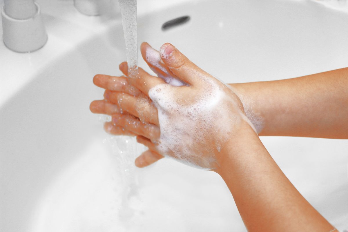 帰宅時だけでなく、調理の前後、食事の前などにも行いましょう。特に指の間、爪の先、手首は洗い残しが多いので、石鹸で20秒以上かけて丁寧に洗いましょう。
