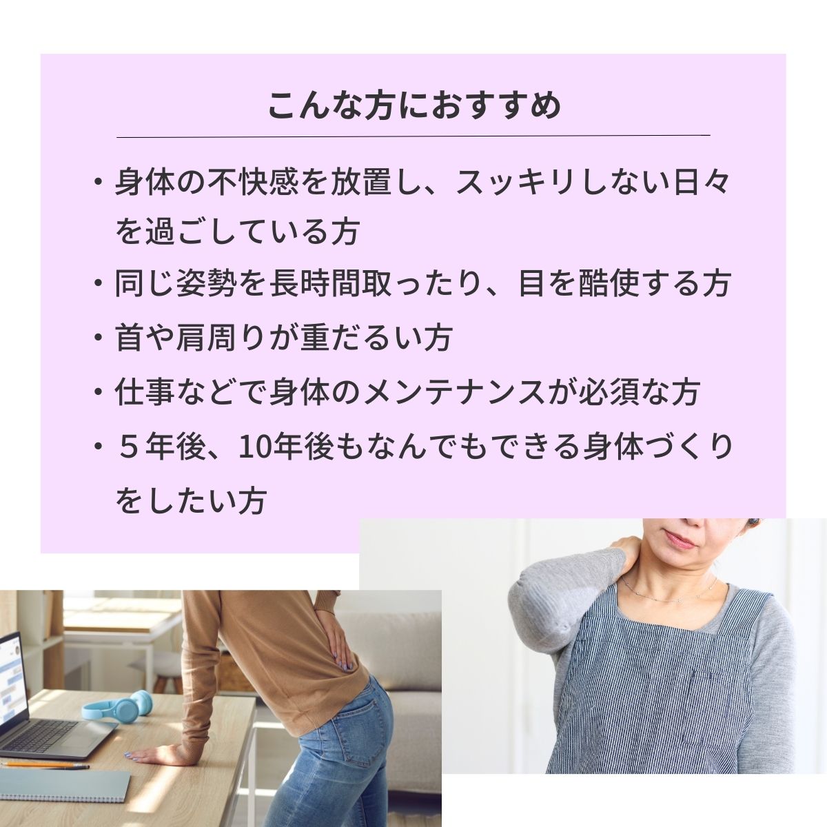 不規則な生活や、睡眠不足、加齢等、日常のちょっとしたことが要因となって発生する身体のトラブル。
