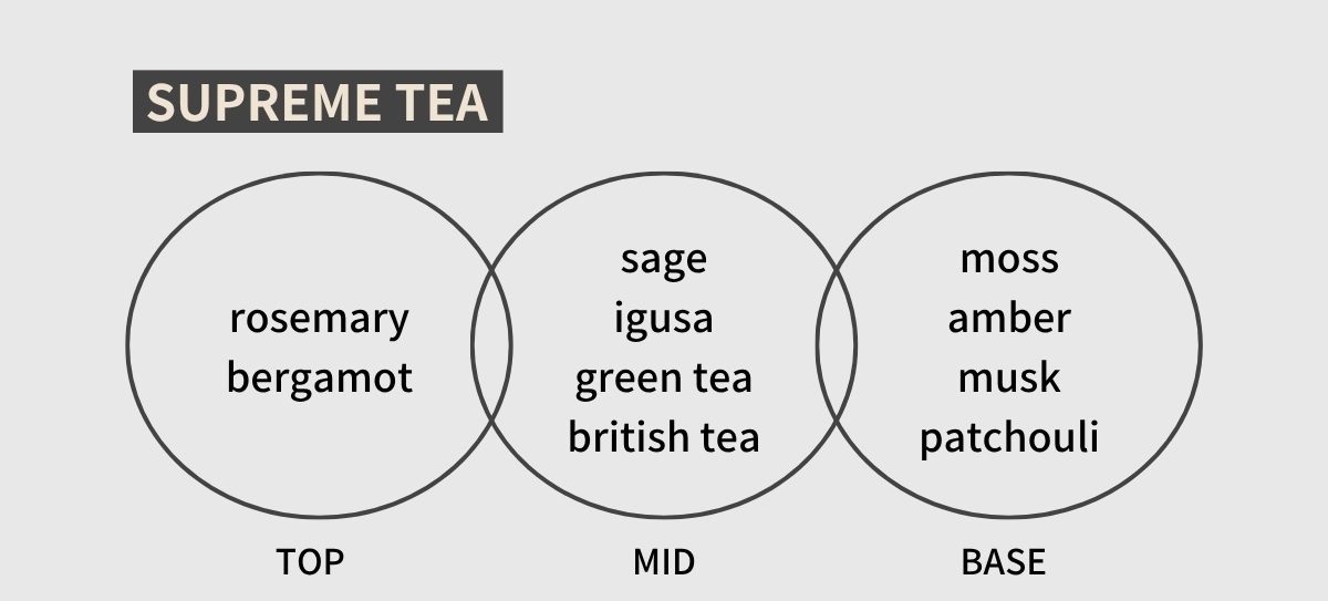 自らの意識に立ち返る旅のひと時を思わせる香り。和と洋の二つの茶にハーブを合わせ、穏やかでありながら都会的で洗練された印象に仕上げた、深呼吸をしたくなるような深い上品さをまとうフレグランスです。